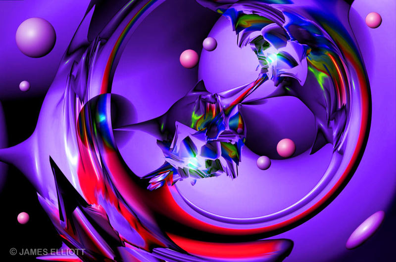 Elliott's revolutionary millennium masterpiece. Vastly ahead of its time, the image involved massive creative and technical innovation. The Artist used four separate computer programs to create the image. The vision concerns itself with creation and destruction in a cosmological, atomic and metaphysical sense. And with a typical Elliottonian sense of irony, in a literal sense. A new Art, bringing with it the destruction of old ideas and limitations. The image has no precedent and defines another new trajectory for contemporary art. Future classic.