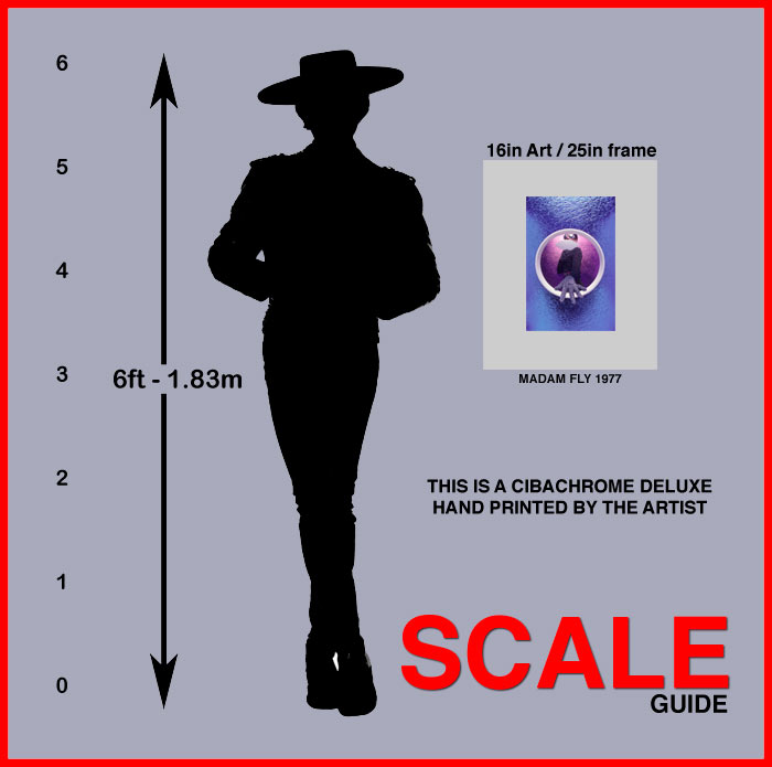 ‘Madame Fly’ is definitely one of Elliott's most famous and iconic works. A classic image, it has been very widely exhibited and published all over the world, including on four magazine covers and a photography yearbook. Decades on it is still massively popular. Highly futuristic at the time, it still looks edgy today. One of Elliott’s hallmarks is undoubtedly the ability to create works which stand the test of time. The litmus test for all great art. The space age feel makes it more at home in the third millennium than the second and the colour palette here is metallic and ultra modern; the perspective, startling and dramatic.